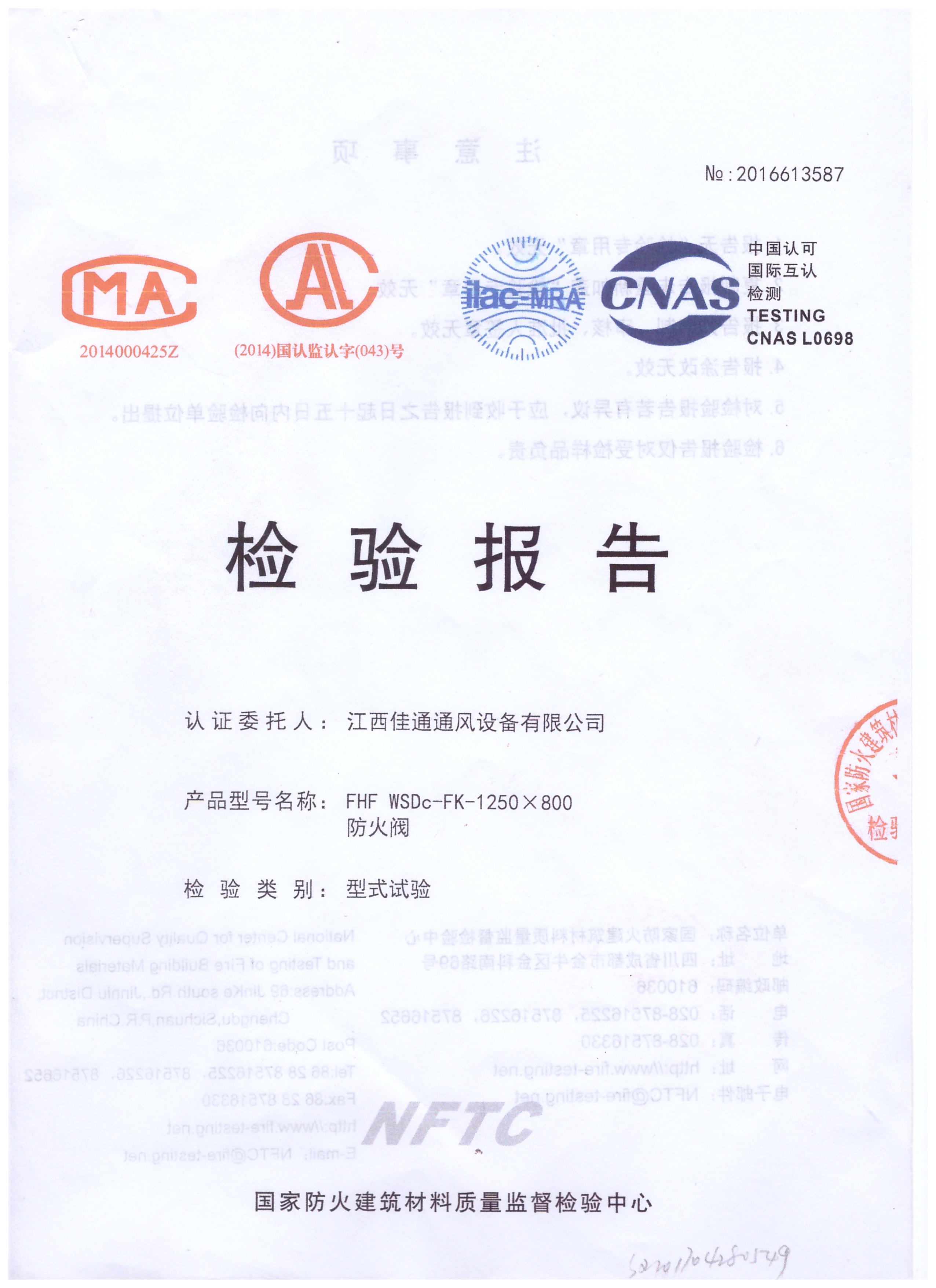 FHF WSDc-FK-1250×800 防火阀检验报告