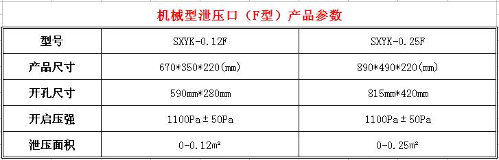 机械型泄压口装置主要由壳体、扇叶、机械装置等组成。泄压口安装在建筑内墙上,平时关闭,当发生火情灭火系统释放灭火剂时灭火区域气压升高,泄压口扇叶内外形成气压差,当达到开启值时即推动扇叶开启。开启后灭火区域气压降低,当小于开启值时扇叶自动关闭,即能维持灭火区域一定的灭火浓度又保护维护结构免遭破坏。按照规范要求:不同建筑空间需要不同泄压面积的泄压口,可根据灭火区域维护结构的耐压强度及灭火剂的喷射速率与特定的系数计算出泄压口面积,通过计算出来的泄压面积选择相应规格的泄压口来满足工程上的需要,从而保证了公司泄压口的通用性。